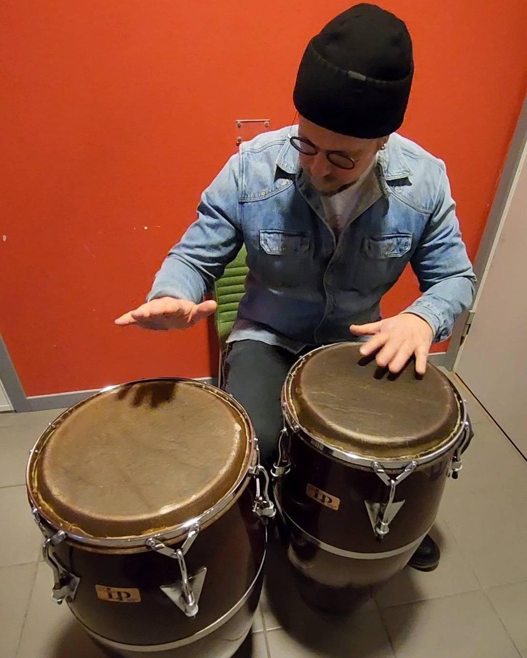 TAKT Bull skins on Skin on Skin conga and Junior Tirado conga.